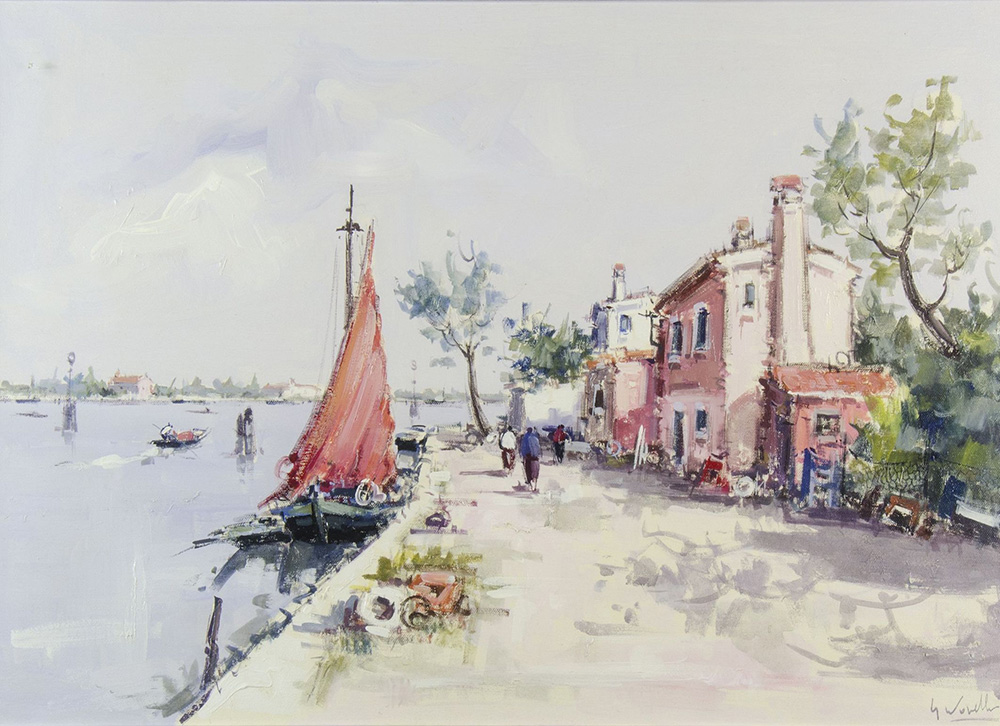 Lot 382 | Giancarlo Novello 1945 "Veduta lagunare" cm. 50x70 - olio su tela Firmato b....