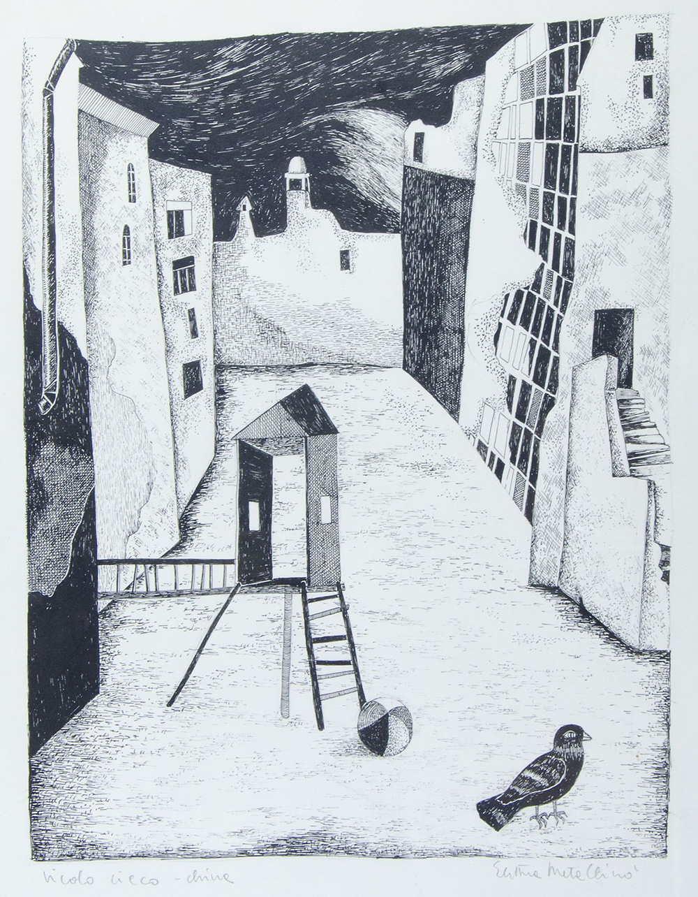 Elettra Metallinò Trieste 1932 "Vicolo cieco" cm. 62x48 - china su carta...