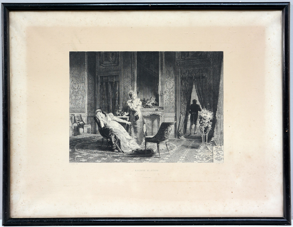 Lot 152 | Stampa raffigurante scena d'interno con figure, in cornice
