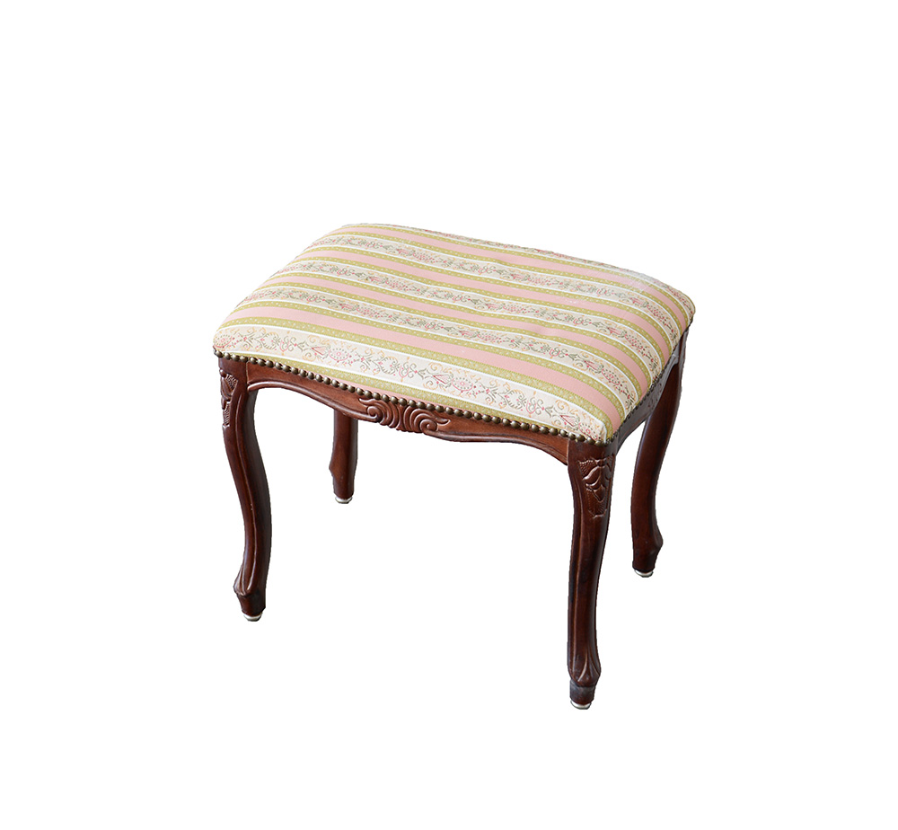 Panchetto rettangolare con gambe mosse e seduta in tessuto a strisce (difetti)