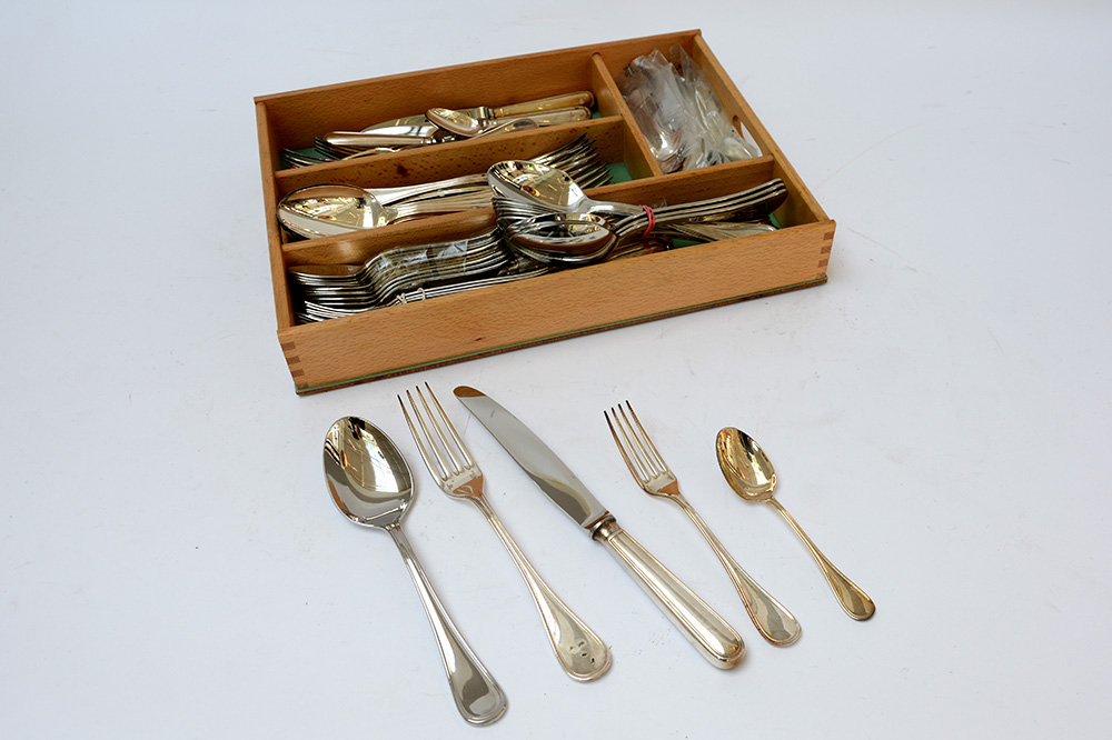Lotto di due parti di servizi di posate di marcate Christofle e Sanbonet (difetti)