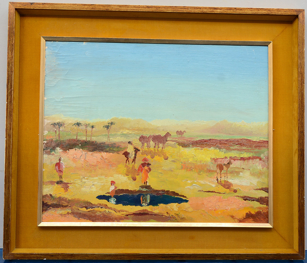 Lot 387 | Ignoto "paesaggio africano" olio su cartone (cm 40x50) titolato al retro. In...