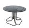 Tavolo con struttura tubolare in metallo cromato. Piano tondo in vetro fumè....