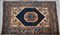 Tappeto Hamadan, Persia inizio sec. XX. Disegno a medaglione crociato nei toni del beige, nocciola e azzurro su fondo blu notte. Angolari bianchi (cm 184x126) (difetti)