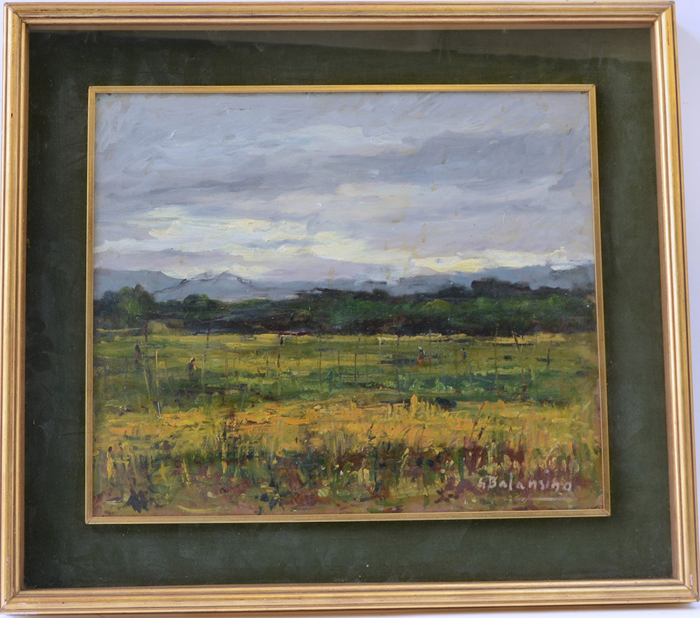Balansino Giovanni (Savigliano (Piemonte) 1912-Rescaldina ( Milano) )"Paesaggio" olio su masonite (cm 40x50) firmato in basso a destra e al retro, in cornice (difetti)
