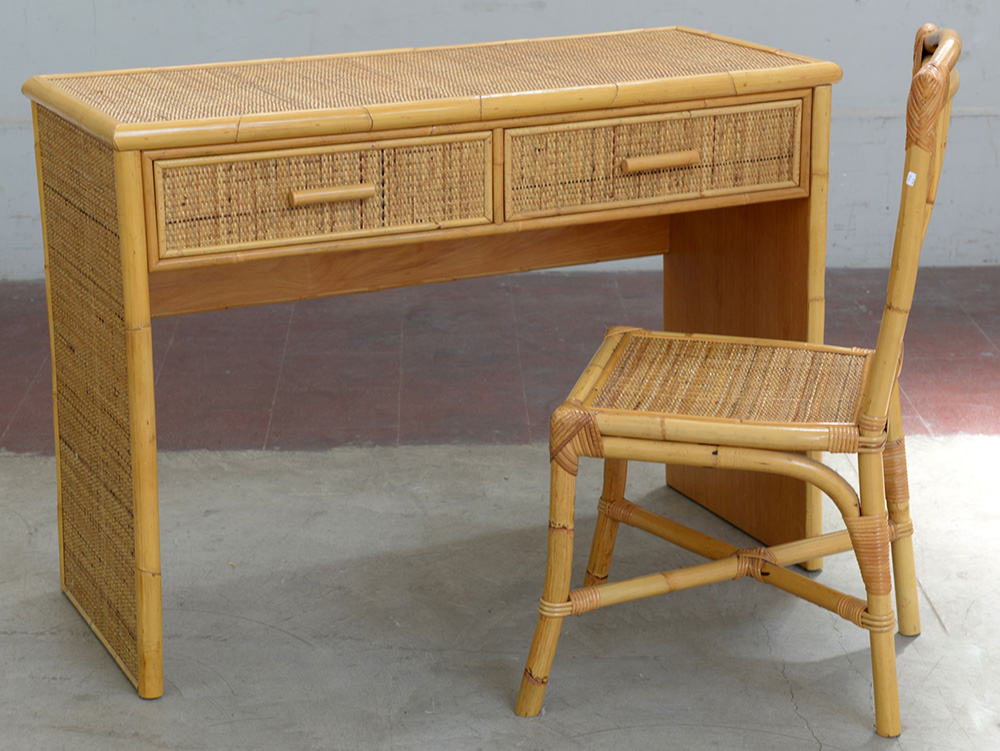 Scrittoio in vimini a due cassetti unito ad una sedia analoga