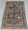 Tappeto Qum, Persia sec. XX. Decorato con scena di caccia, ispirata all'epoca safavide, in policromia su fondo azzurro, bordura con uccelli e animali su fondo nocciola (cm 263x166) (difetti)
