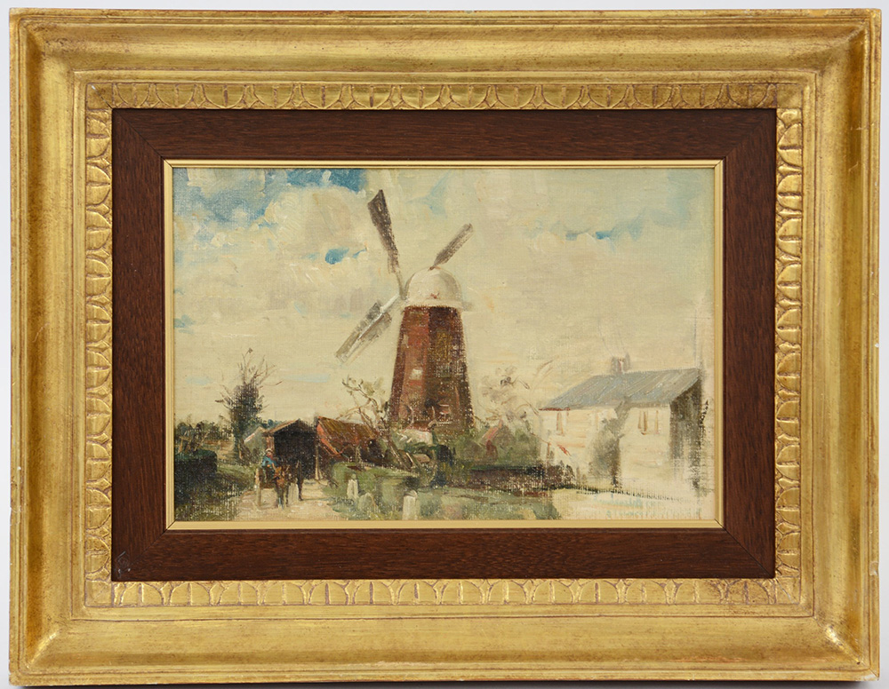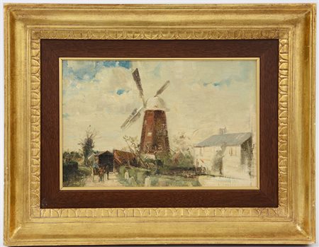 Eugenio Scorzelli (Buenos Aires 1890 Napoli 1960)(attr.) "Paesaggio con mulino" olio su cartone telato (cm 20x30) in cornice