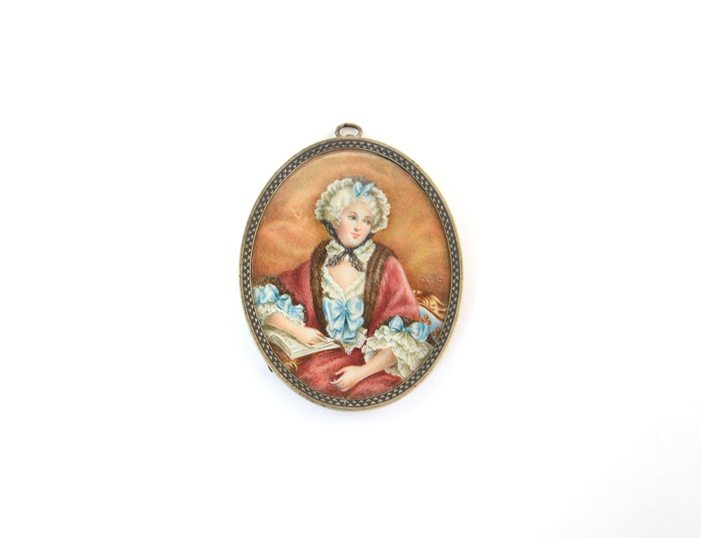 Ignoto, inizio sec. XX "Gentildonna con libro" miniatura ovale su vaorio (cm 8,5x7) In cornice