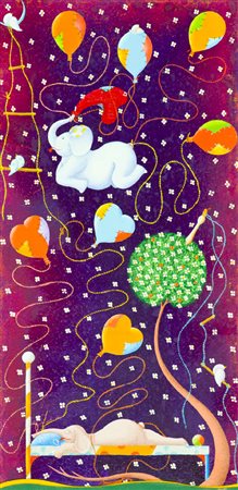 Beppe Francesconi Marina di Massa (Ms) 1961 I tuoi sogni sono a colori Olio su tela, cm. 60x30 Firmato in alto a destra. Sul verso: firma e titolo.