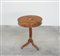 Tavolino da salotto lastronato in noce con piano filettato a motivi circolari con stella al centro. Gamba centrale a colonna terminante a tre piedi mossi. Sec. XIX (h. cm 70 x d. cm 52) (difetti e restauri)