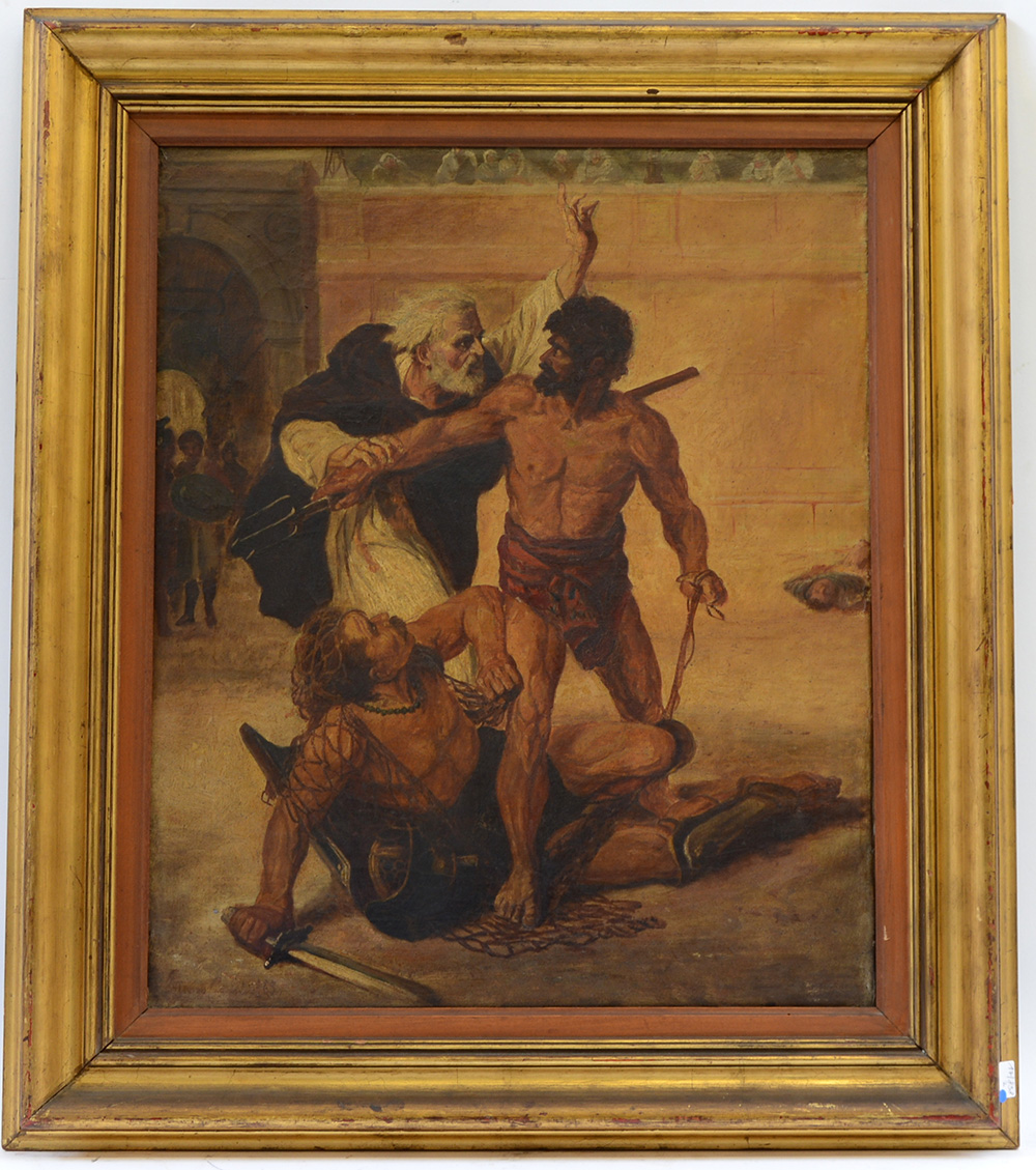 Ignoto "L'interruzione del combattimento" olio su tela (cm 55x45) In cornice