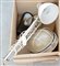 Cartone contenente due applique e una lampada da scrivania, di fatture...