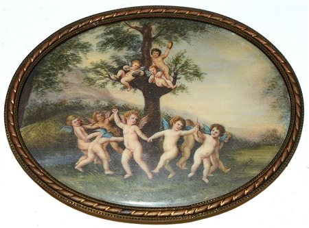 Oprè "Cherubini in un bosco" miniatura ovale (cm 6x8)