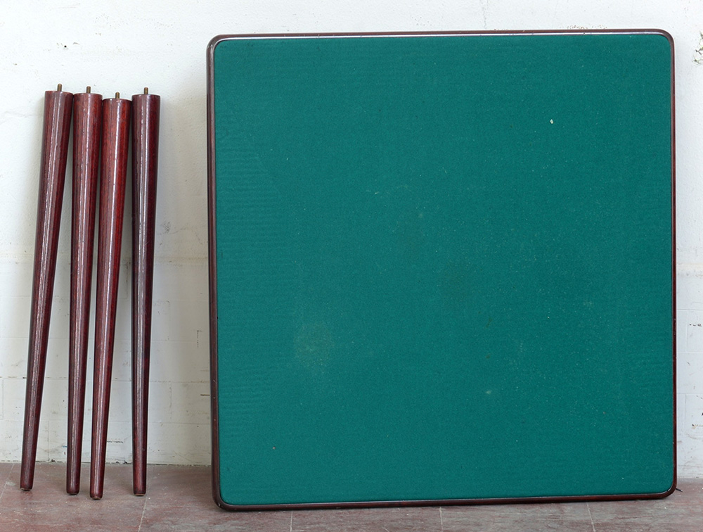 Tavolino da gioco in mogano con piano rivestito in tessuto verde
