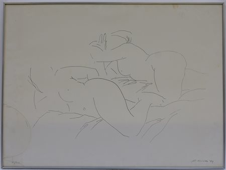 Firma indecifrata"Senza titolo" 1972 litografia (cm 50x70) numerata 113/200, firmata e datata in basso in lapis. In cornice (lievi difetti)
