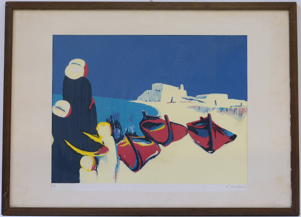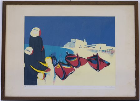 Firma indecifrata "Senza titolo" serigrafia, prova d'artista (cm 50x40) inscritta e numerata in basso in lapis. In cornice (lievi difetti)