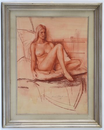 Romano Stefanelli 1931 "Ritratto di modella", tecnica mista su compensato (cm 78x57) firmato e datato LXX1 in basso al centro; timbro al verso della Galleria d'Arte Moderna Sala delle Muse, in cornice