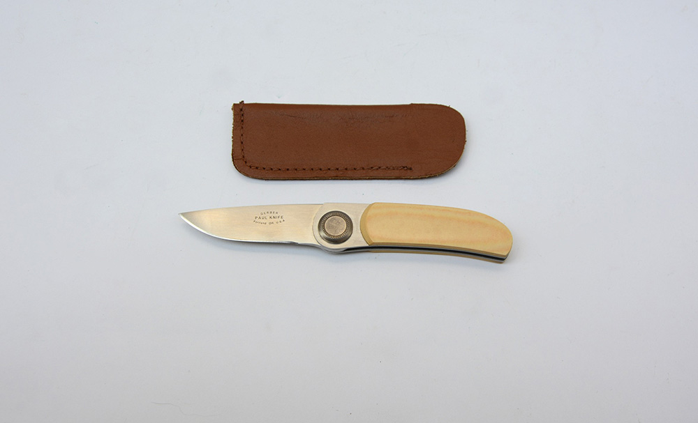 (Historica) Coltello pieghevole con custodia, marca Gerber (USA). In confezione originale.
