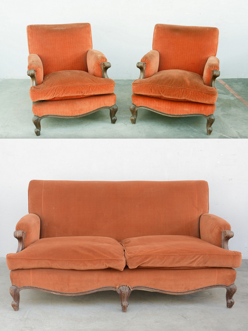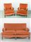 Fornitura da salotto in noce composta da divano a due posti e due poltrone...