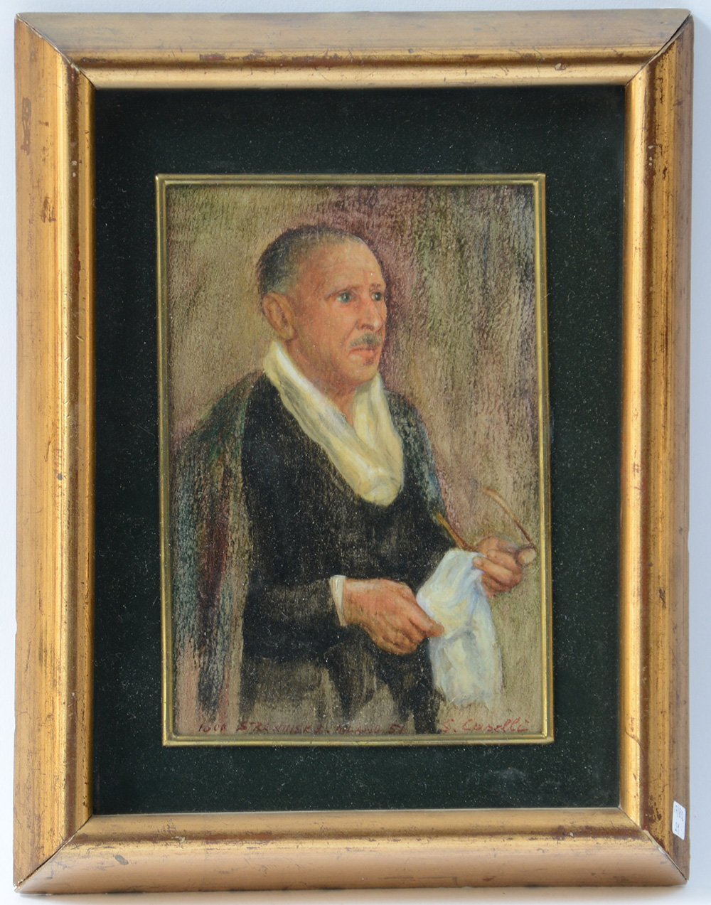 Caselli Silvano Firenze 1921 "Ritratto di Igor Stravinsky", olio su tavoletta (cm 18x12) firmato, titolato e datato 1951 in basso, in cornice (lievi difetti)