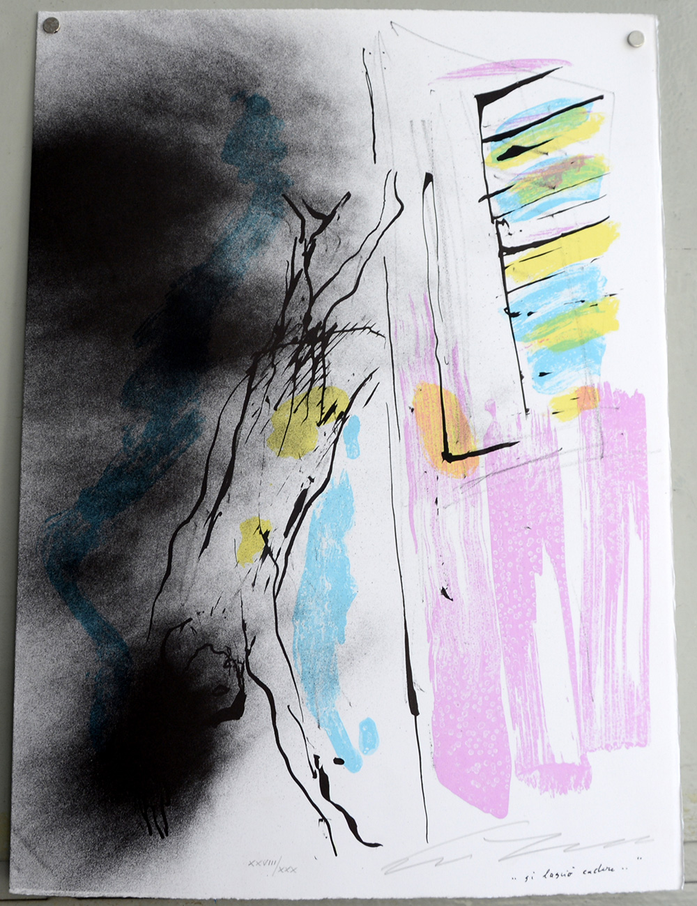Ernesto Treccani (Milano 1920-Milano 2009)"...si lasciò cadere.." litografia...
