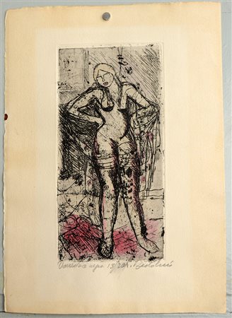 Luigi Bartolini (Crapamontana 1892-Roma 1963)"Danzatrice negra" acquaforte acquerellata (lastra cm 25x12, foglio cm 35,2x25) titolata, numerata 13/200 e firmata in basso in lapis (lievi difetti)