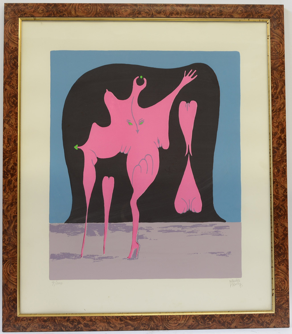 Maurice Henry (Cambrai 1907-Milano 1984)"Senza titolo" serigrafia a colori (cm 70x60) numerata 9/100 e firmata in basso in lapis, timbro a secco in basso a destra "Il labirinto, Roma". In cornice