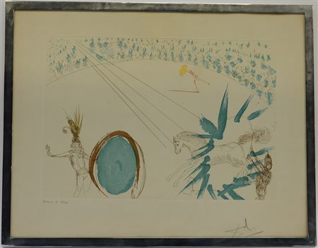 Salvador Dalì (Figueres 1904- 1989)"Senza titolo" multiplo a tecnica mista – prova d'artista (lastra cm 36x52 foglio cm 51x66) inscritto e firmato in basso in lapis. In cornice (lievi difetti)
