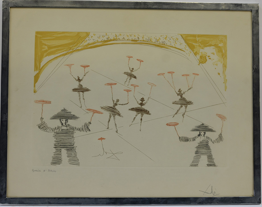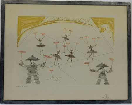 Salvador Dalì (Figueres 1904- 1989)"Senza titolo" multiplo a tecnica mista – prova d'artista (lastra cm 36x52 foglio cm 51x66) inscritto e firmato in basso in lapis. In cornice (lievi difetti)