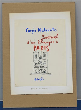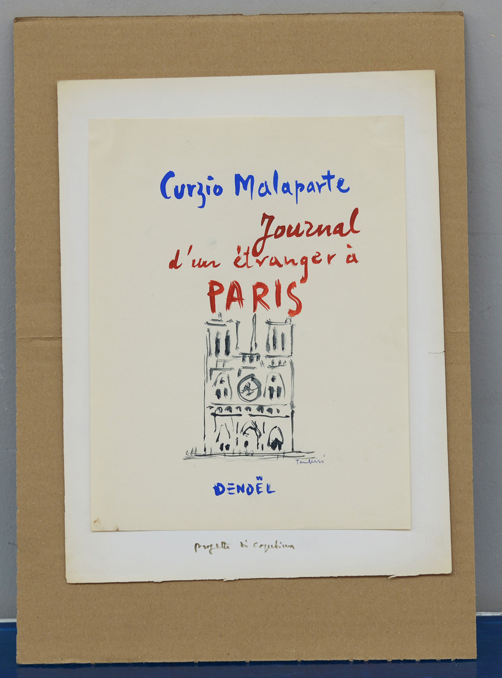 Orfeo Tamburi (Jesi 1910-Parigi 1994)Progetto di copertina per l'opera "Journal d'un etranger a Paris" di Curzio Malaparte, tecnica mista su carta (la copertina cm 27x20, foglio cm 33x25)(lievi difetti)