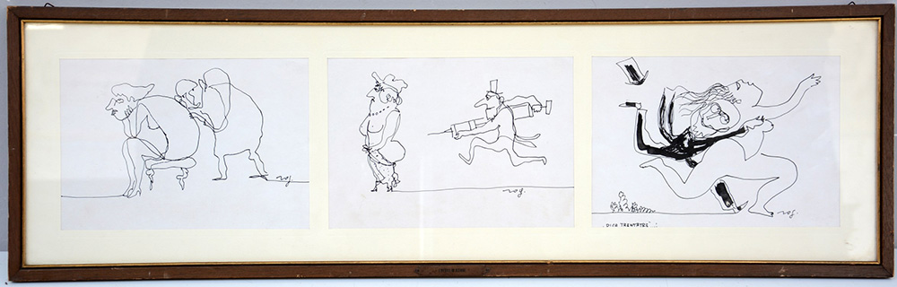 Franco Rognoni (Milano 1913- 1999)"I Medici in azione" Gruppo di tre disegni a china, probabilmente per la rivista "Humor Graphic" firmati in basso (cm 17x24 cad.) Montati in unica cornice