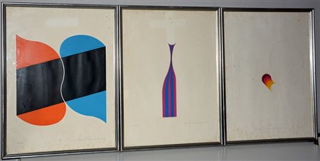 Takahashi Shu Giappone 1930 "Composizioni" Gruppo di tre calcografie a colori (cm 63x47) es 36/100 firmate e numerate in basso. In cornici(difetti)