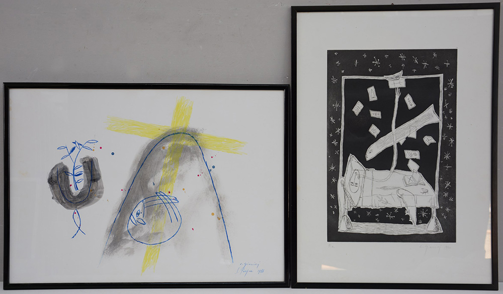 Giannici Celano Lotto composto da una tecnica mista e una prova d'autore, misure diverse, firmate C. Giannici, in cornici
