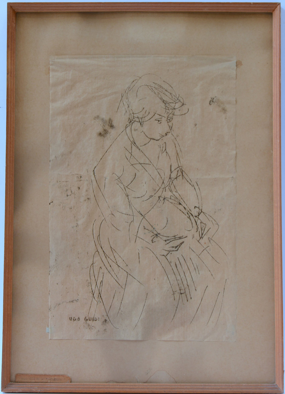 Ugo Guidi ( 1912- 1977)“Donna” 1970 China su carta, cm 37,5x24,5 Firmato in basso a sinistra. Dedicato firmato e datato al retro. In cornice (lievi difetti)
