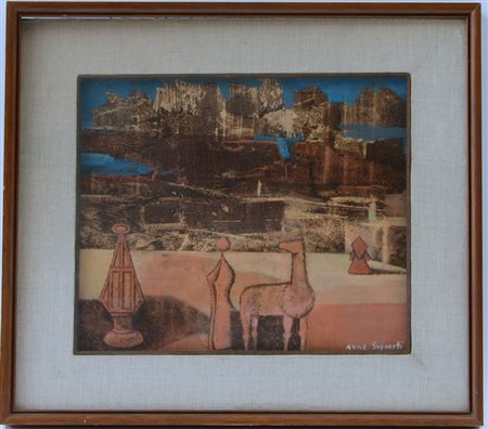 Anne Jenness Saporetti (San Francisco 1914 Florida 1984)“Senza titolo” Tecnica mista su tavola (cm 25x30) firmato in basso a destra. In cornice