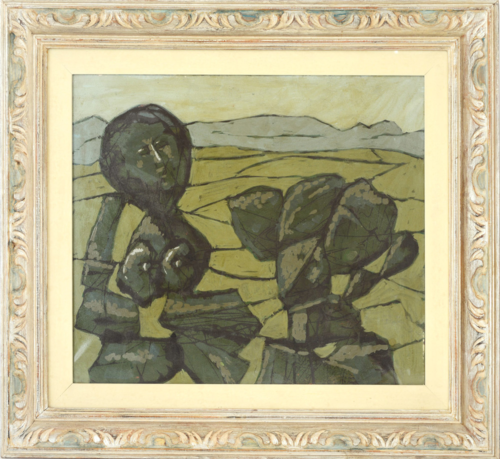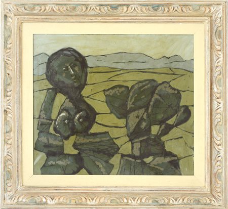 Adolfo Saporetti (Ravenna 1907-Milano 1974)“Ricordo di un'Arizona” 1965 Olio su tela (cm 60x70). In cornice Esposizioni: "Comune di Milano ripartizione iniziative culturali 20 dicembre 1971-10 gennaio 1972, antologica di Antonio Saporetti" – "Galleria d'Arte Santacroce Firenze" etichette al retro Provenienza: "Vittorio Grotti Capezzano di Camaiore" timbri al retro