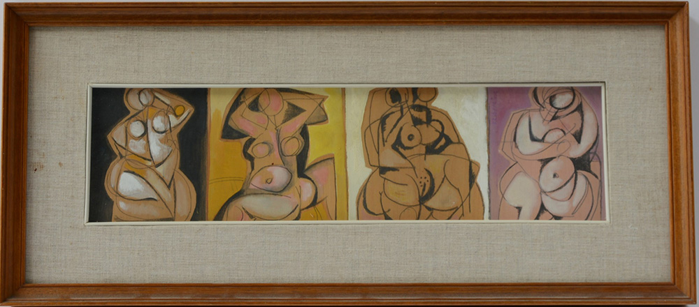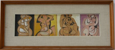 Fausto Liberatore (Lucca 1922- 1994)“Quattro Nudi donna” 1969 tecnica mista su tavoletta (cm 13x46) Firmato e datato 1969 al retro. In cornice