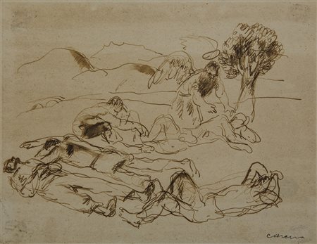 Carena "Studio" china su carta (cm 16,5x21) firmata in basso a destra. In...
