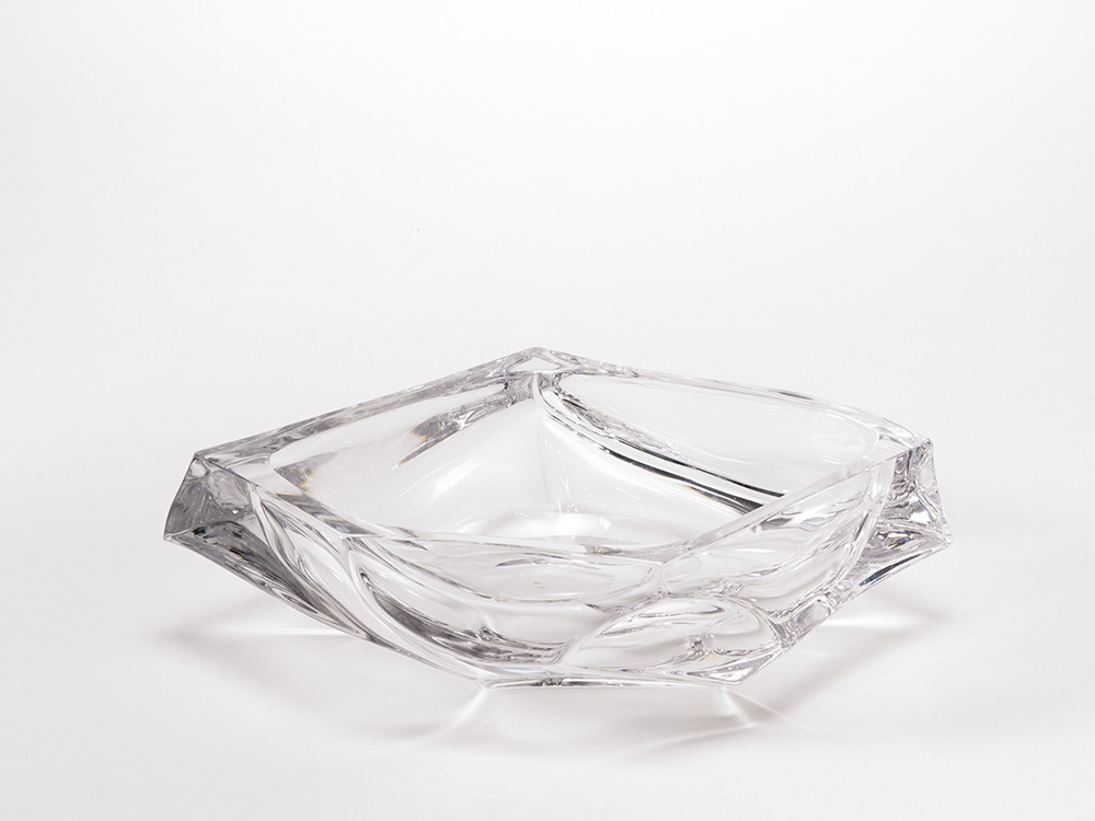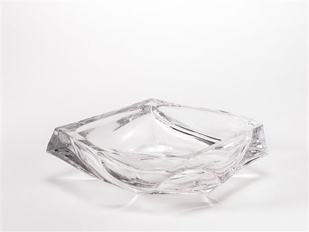 Daum, Francia - Portafrutta di forma sagomata in cristallo pesante. Firmato sotto la base (cm 33x9,5x25) (lievi difetti)