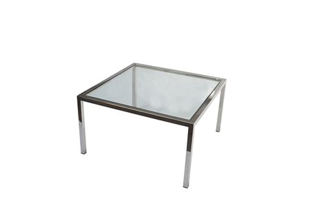 Tavolo basso in metallo cromato con piano in vetro. Italia, anni 70 (cm 80x45x80) (lievi difetti)