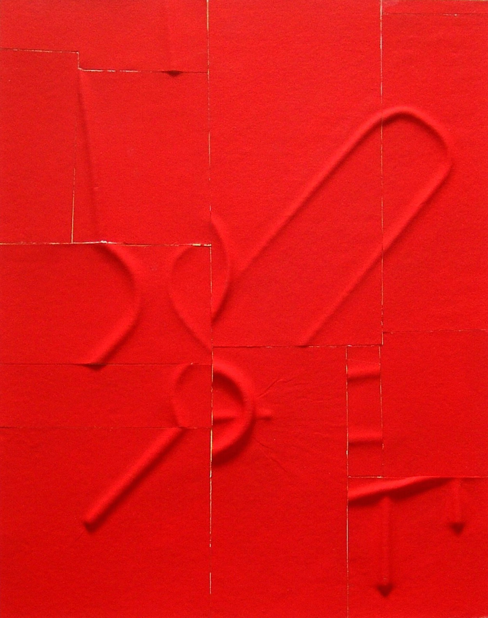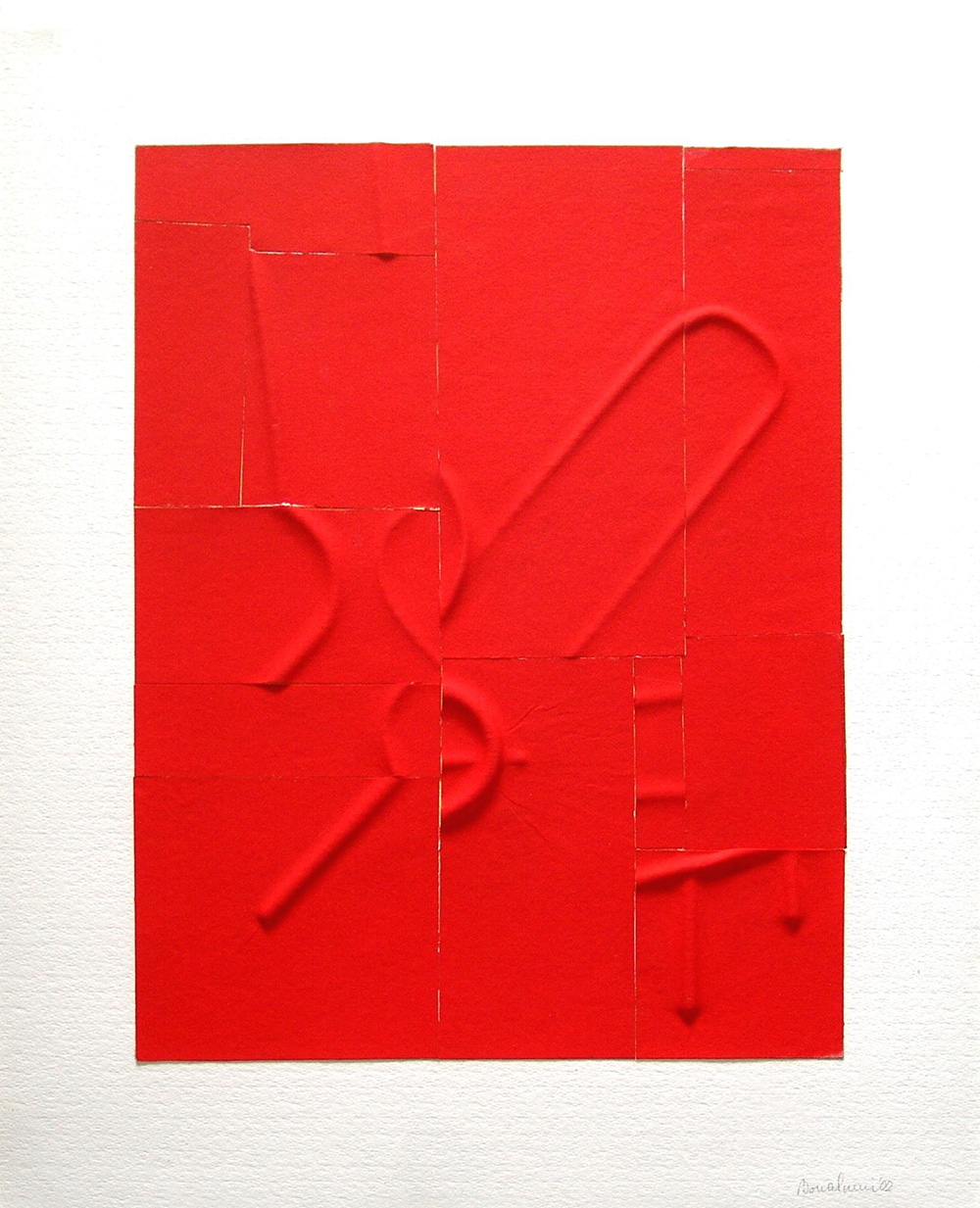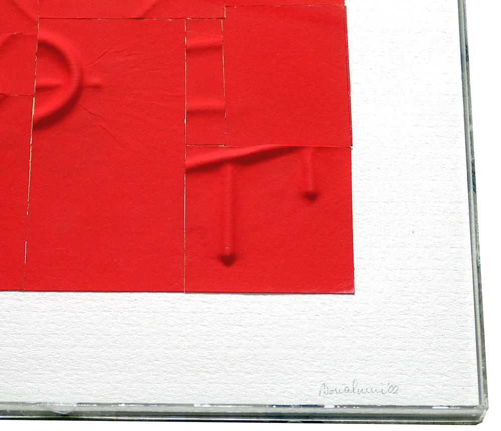 Agostino Bonalumi 1935, Vimercate (Mi) - 2013, Vimercate (Mi) - [Italia] Rosso carta dipinta estroflessa 45x35 cm 2002 firma dell’artista in basso a destra; opera contenuta in teca di plexiglas certificato di autenticità dell’artista su fotografia