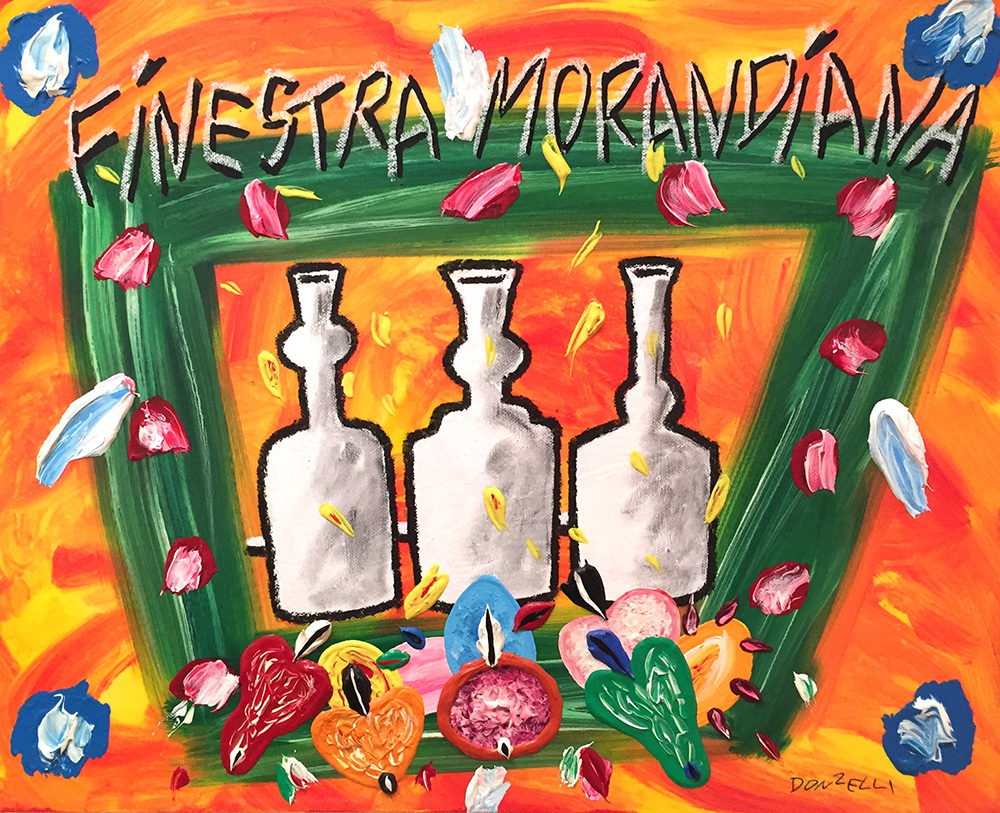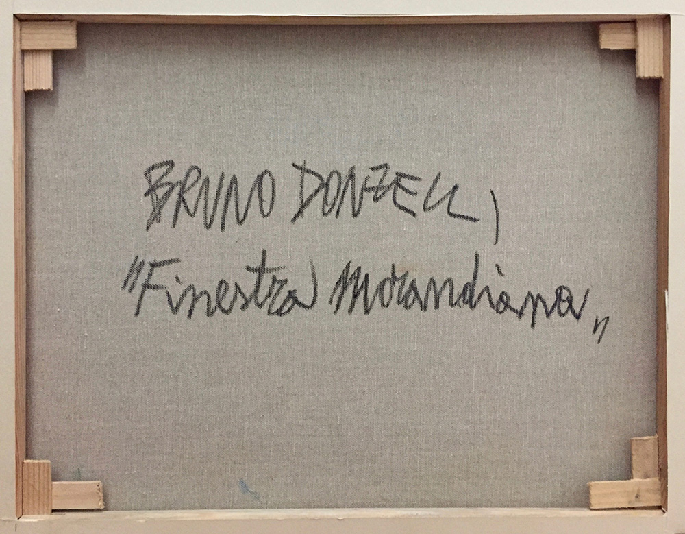 Bruno Donzelli 1941, Napoli (Na) - [Italia] Finestra morandiana olio su tela 40x50 cm c. 2000 firma dell’artista in basso a destra e sul retro; opera con cornice certificato di autenticità dell’artista su fotografia