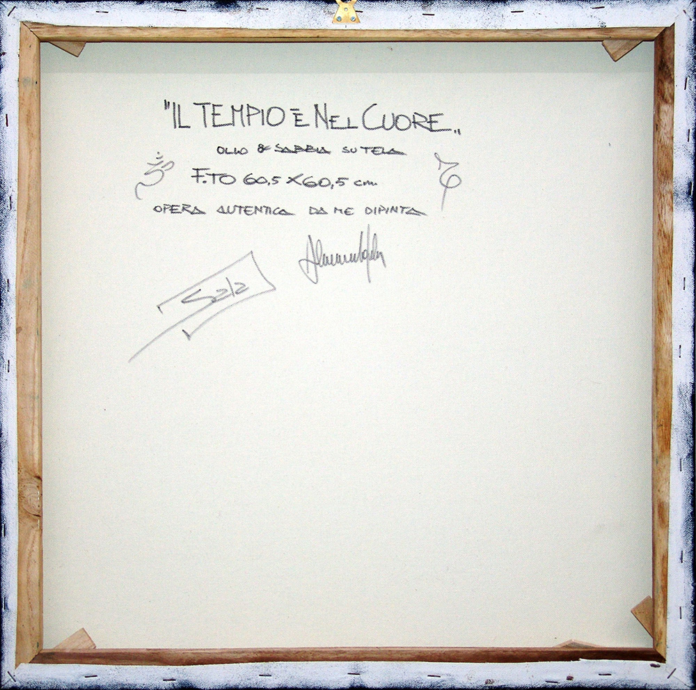 Alessandro Sala 1958, Genova (Ge) - [Italia] Il tempio è nel cuore olio e sabbia su tela 60x60 cm 2016 firma dell’artista in basso al centro e sul retro certificato di autenticità firmato dall’artista