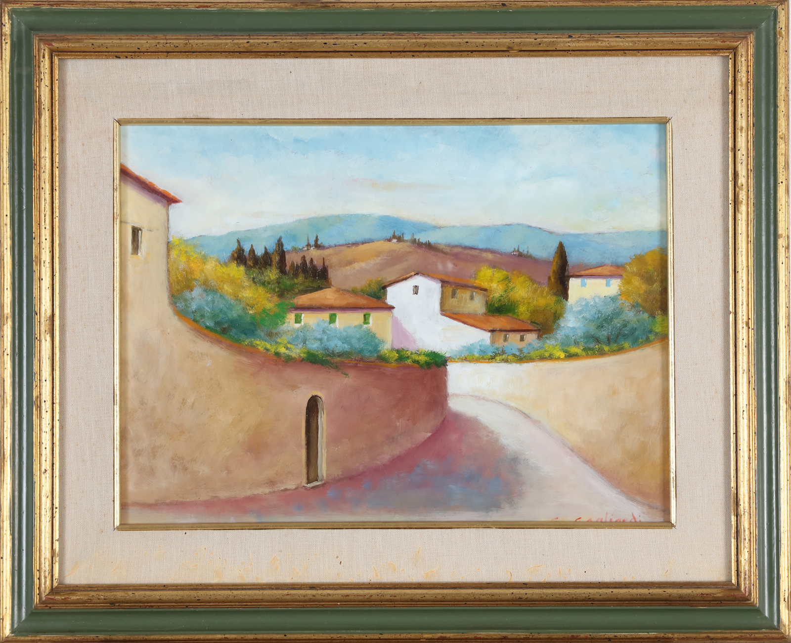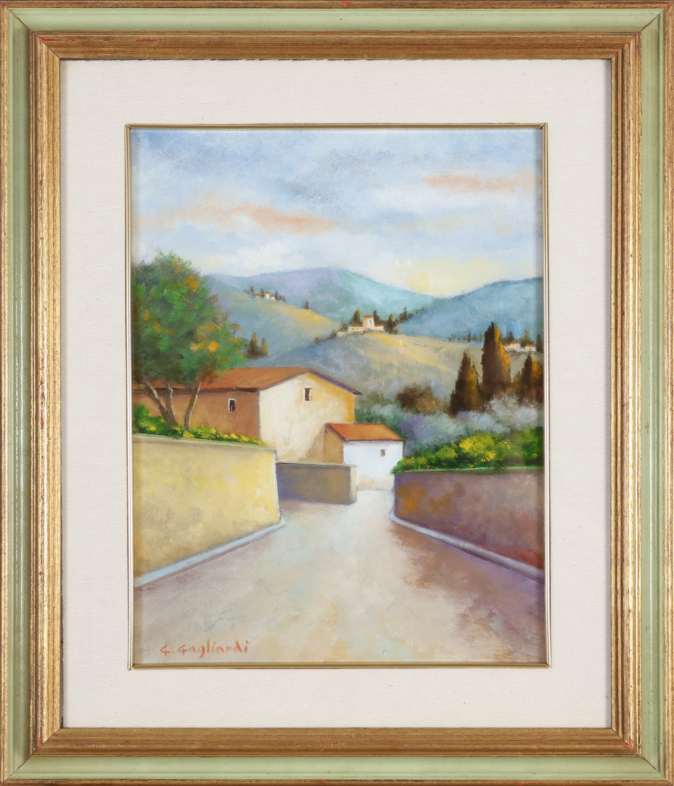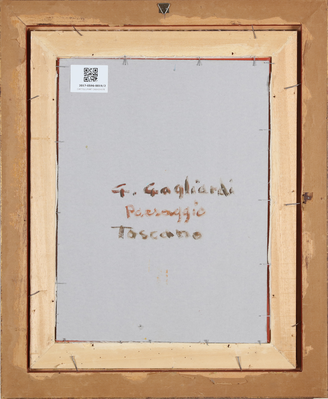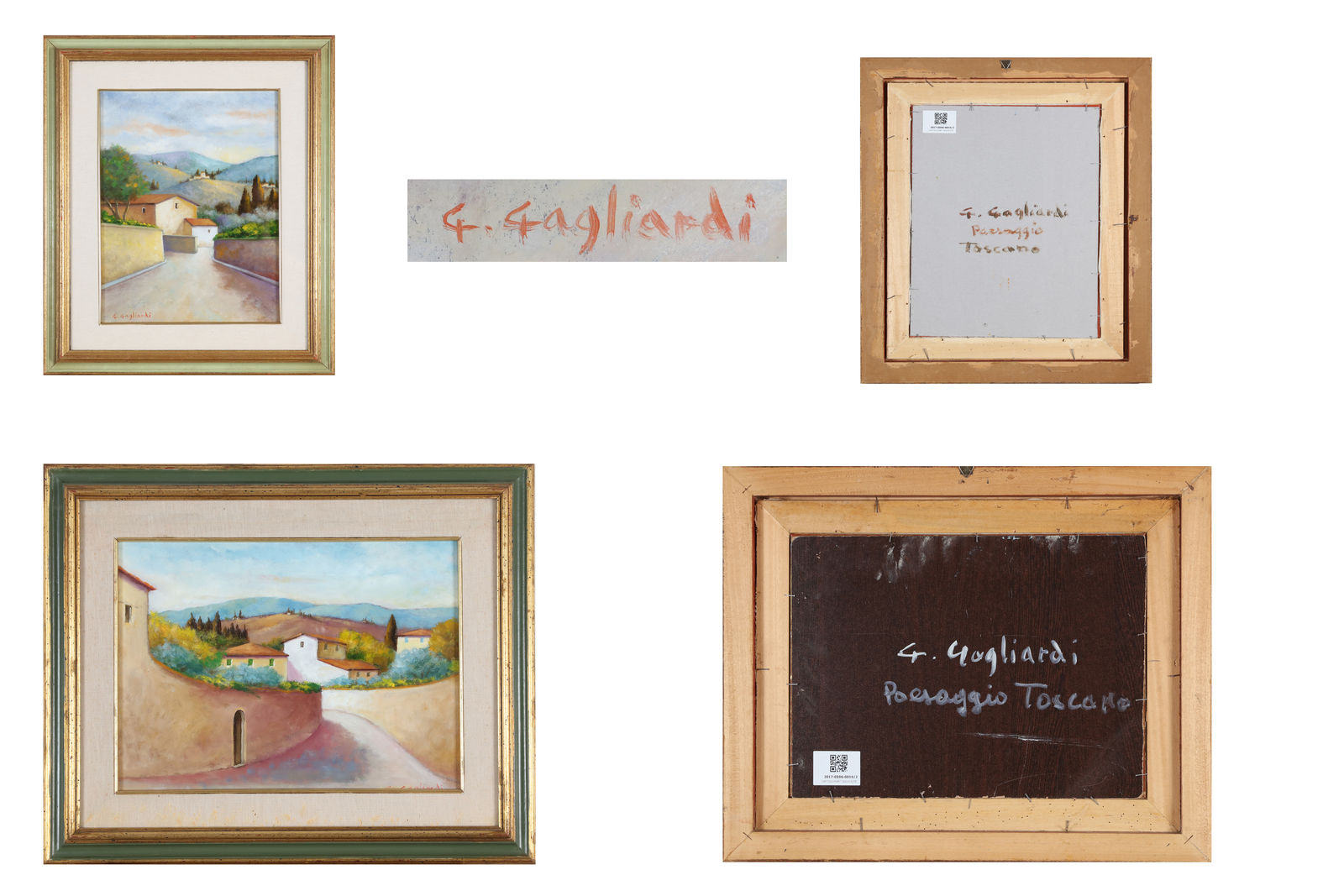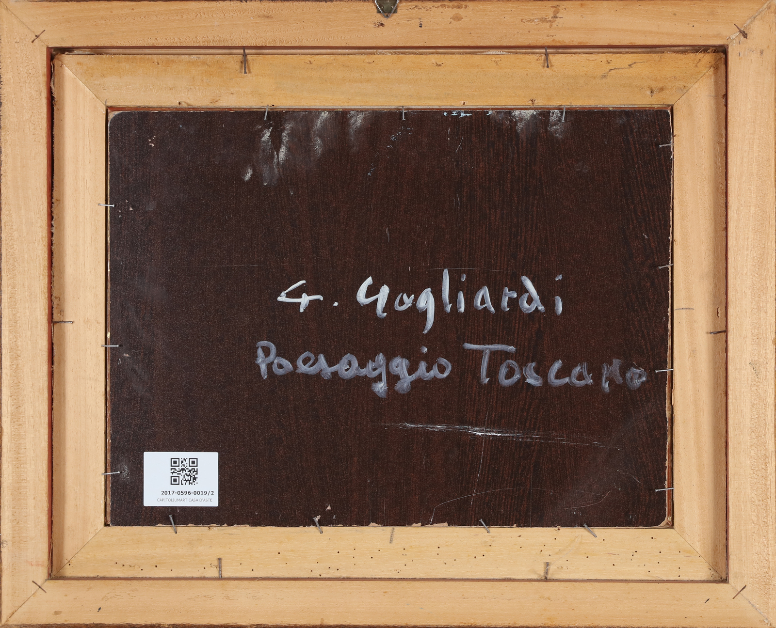 GAGLIARDI GIUSEPPE (n. 1896) Lotto composto da n. 2 opere. Paesaggio toscano. Olio su cartone. Cm 30,00 x 40,00. Entrambe le opere riportano la firma in basso e al retro titolo e firma. Cornice presente