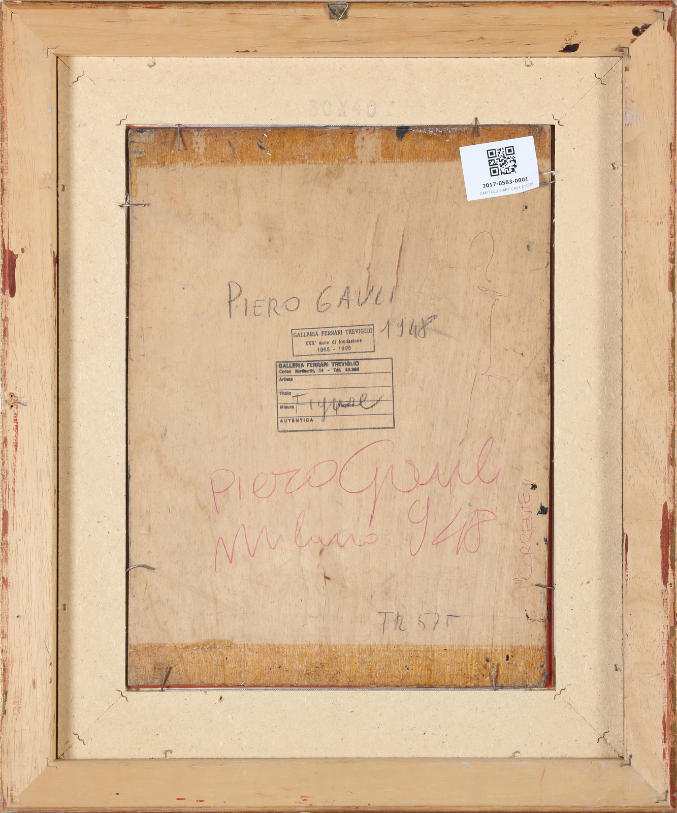 GAULI PIERO (n. 1916) Senza titolo. 1948. Olio su tavola. Cm 30,00 x 40,00. Al retro frima, anno e timbro Galleria Ferrari, Treviglio. Cornice presente