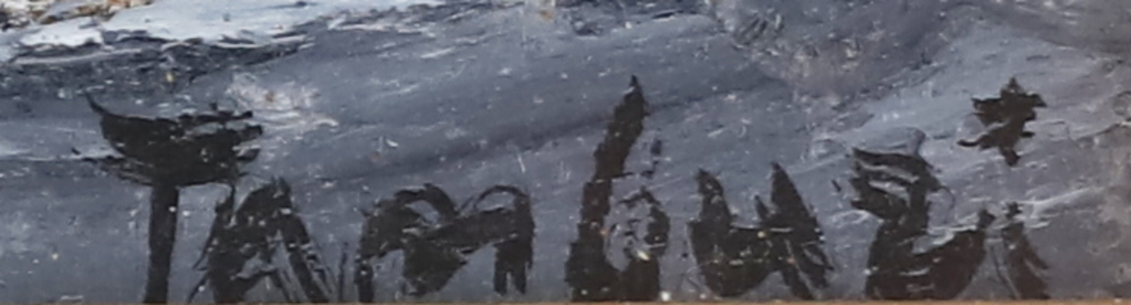TAMBURI ORFEO (1910 - 1994) Senza titolo. . Olio su tela . Cm 30,00 x 20,00. Firma in basso a destra. Provenienza Galleria d'arte il Vicolo, Genova. Opera archiviata presso la Galleria Gioacchini -Archivio Orfeo Tamburi, Ancona come da documentazione fotografica allegata all'opera riportante il relativo numero d'inventario. Cornice presente