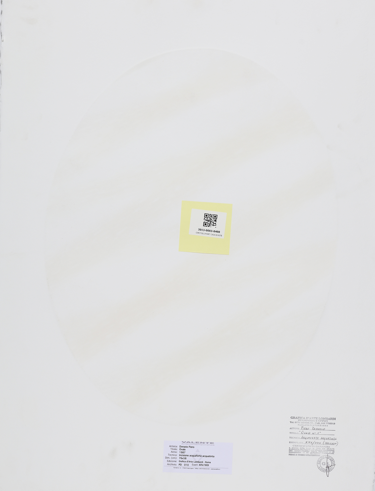 DORAZIO PIERO (1927 - 2005) Ovale. 1987. Acquaforte. Cm 58,00 x 76,00. XXVI/XXX. Tiratura firma e data in basso a matita. Timbro a secco - Grafica D'Arte Lombardi, Roma - in basso a sinistra. Al retro timbro - Grafica D'Arte Lombardi, Roma.