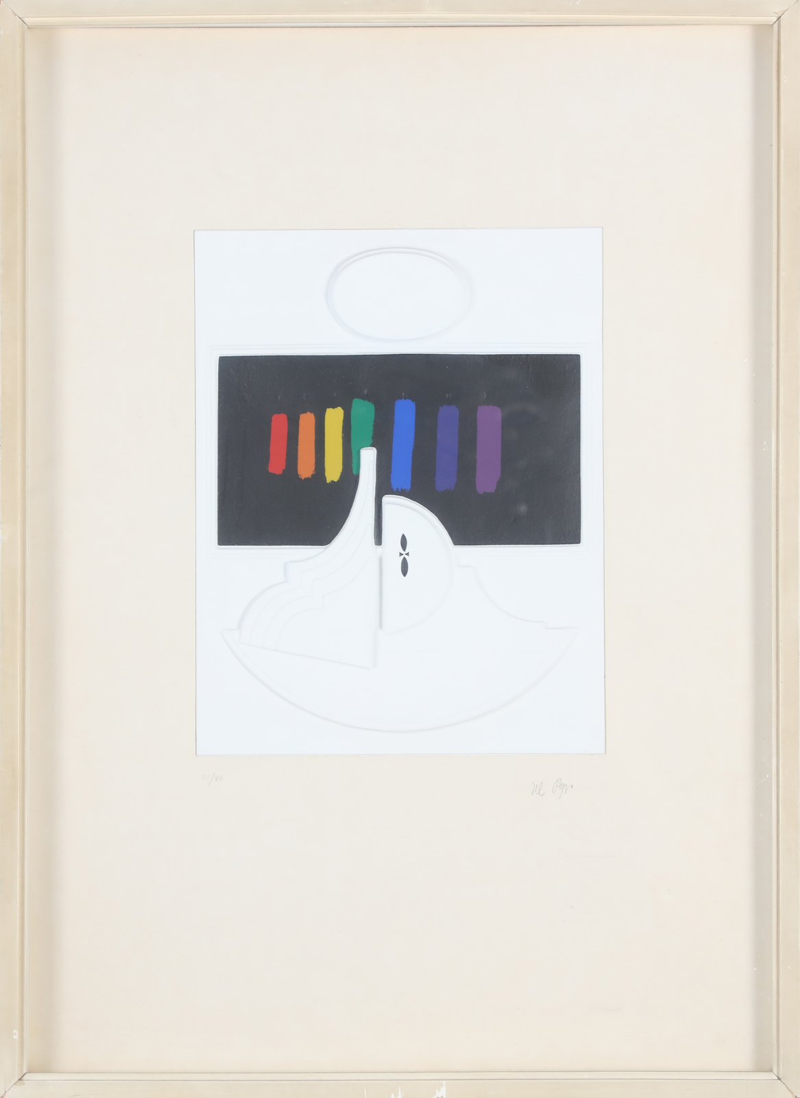 DEL PEZZO LUCIO (n. 1933) Senza titolo. Litografia. Cm 49,00 x 69,00. III/VII. Tiratura e firma a matita in basso. Timbro a secco Gabriele Mazzotta Editore. Cornice presente