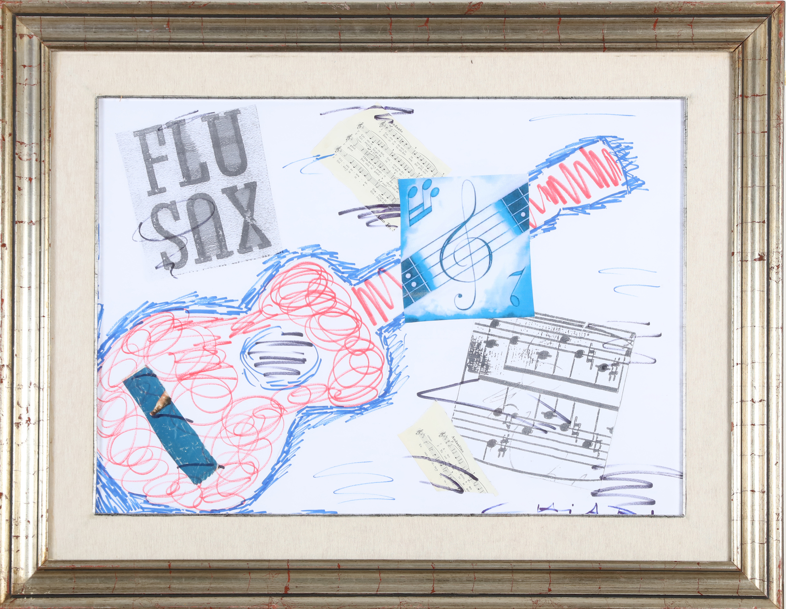 CHIARI GIUSEPPE (1926 - 2007) Chitarra. Tecnica mista e collage su cartone....